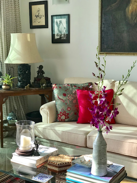 Maadhumita's home boasts of a global appeal with its aesthetics deeply rooted in our Indian culture. Everything seamlessly falls into place.This is something I loved about her home. There is a perfect balance of comfort and style that makes the decor seem simple yet sophisticated! Every corner is well thought of in detail but it still doesn't seem to be decorated just for the sake of it!